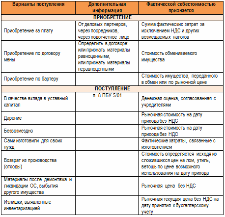 • Оценить поступившие ценности, то есть понять — по какой стоимости в соответствии с нормами бухгалтерского законодательства должны поставить их на учет, п.5 ПБУ 5/01 предлагает 2 способа;