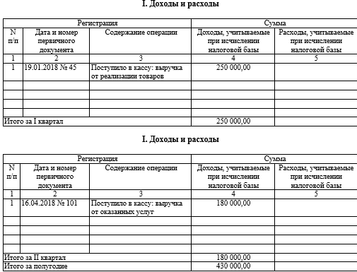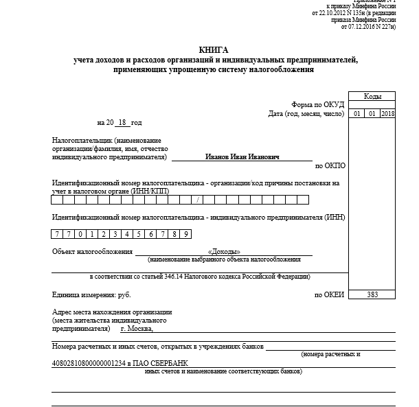 Образец заполнения Книги доходов и расходов (КУДиР) при УСН