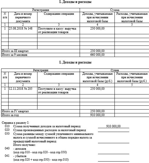 - Раздел I – отражает доходы и расходы налогоплательщика поквартально и справку, где указывают итоговую сумму за налоговый период (год);