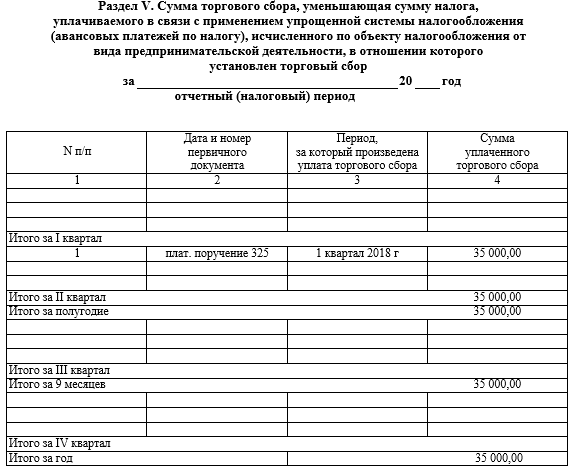 Перечислил торговый сбор во II квартале в сумме 35 000 руб.
